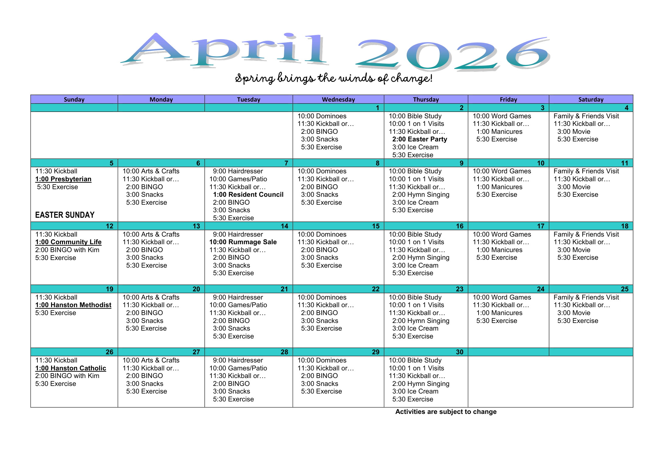 Activities: Residents can enjoy live music, church services, bingo, gardening, movies, and more. We even have a friendly cat, Betty, who is a favorite among residents.